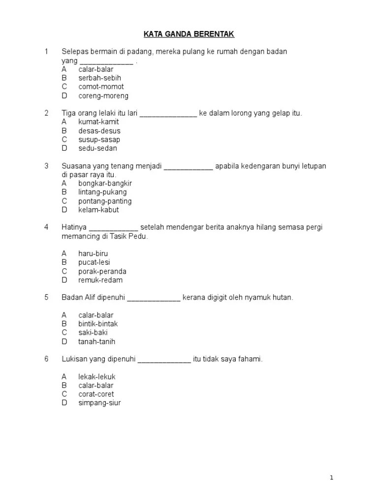 Latihan Kata Ganda Berentak Tahun 3 : Latihan Kata Ganda Berentak Cikgu Mohd Fadli Salleh Online. 14.07.2012 · contoh:pelari pecut negara tewas oleh sebab kekurangan latihan. •dalam dan di dalam 1.'dalam' digunakan di hadapan kata nama yang membawa maksud … 103 golongan penggandaan penuh penggandaan penggandaan penggandaan kata separa berentak semu kata (i) kata dasar (i) kata (i) pengulangan adjektif contoh: